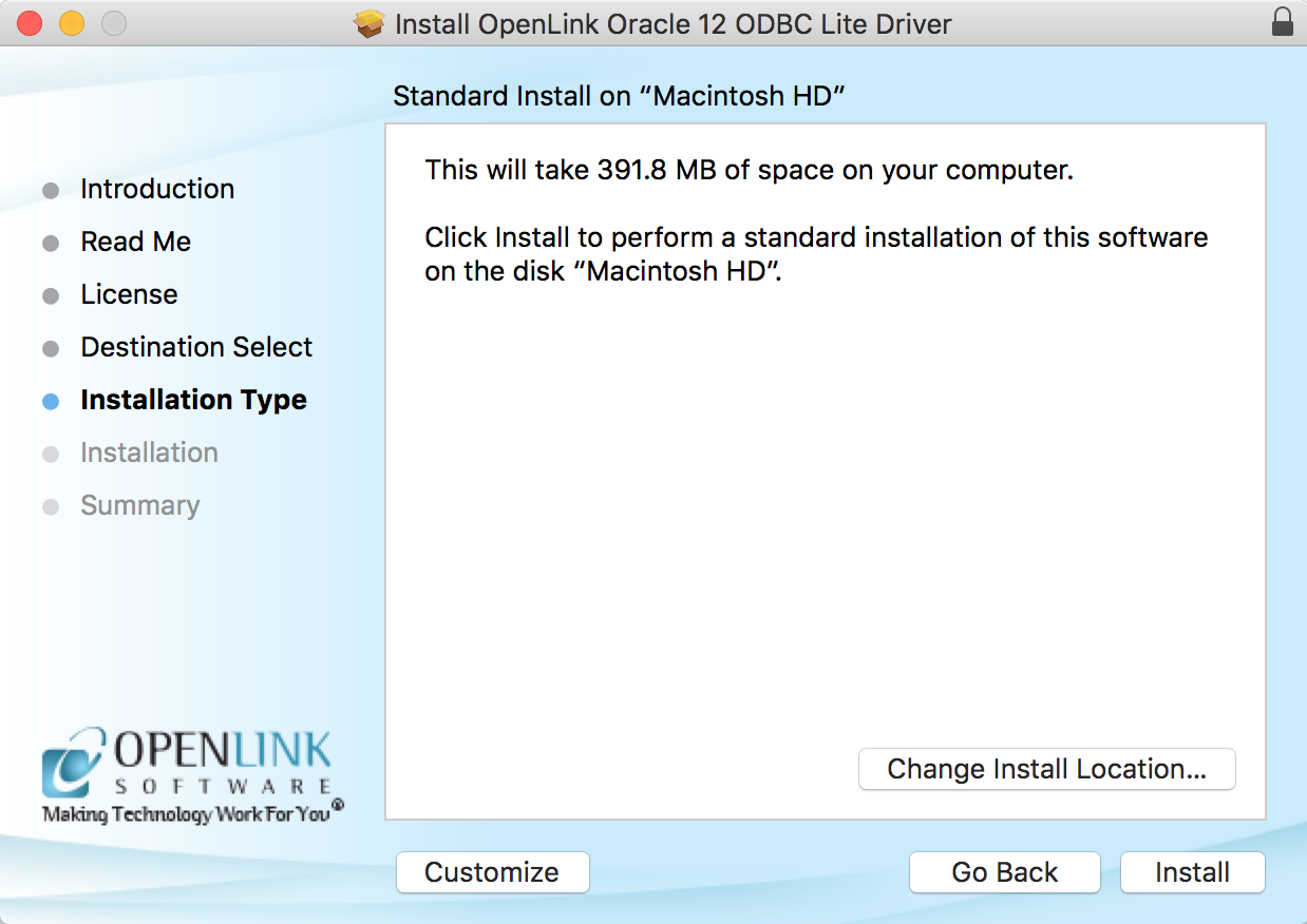 - The Lite Edition (Single-Tier) ODBC Drivers for Oracle 11g & 12c for Mac OS X are distributed in a single disk image (.dmg) file, which contains a Macintosh Installer mpg.
