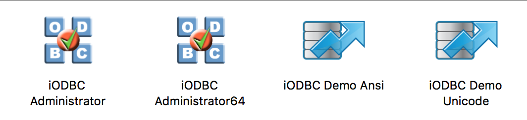 Note - Either the "iODBC Administrator" or "iODBC Administrator 64" programs can be used, as the driver is a "universal" bundle containing both a 32bit and 64bit driver as part of the single universal binary and the appropriate executable format will be loaded to match the program calling it.